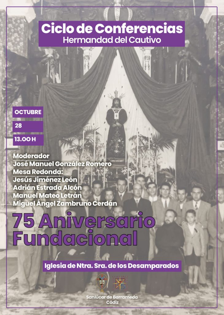 Este sábado día 28 de octubre, a las 13.00 horas en la Iglesia de Ntra. Sra. de los Desamparados, tendrá lugar la segunda de las ponencias del Ciclo de Conferencias organizado con motivo del 75 Aniversario Fundacional de nuestra Hermandad.