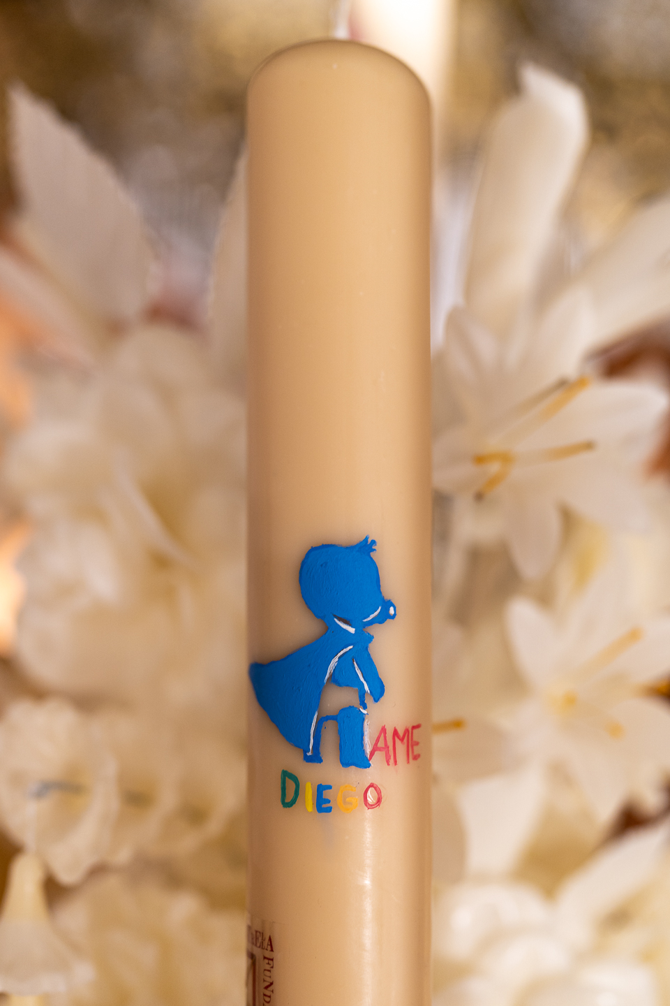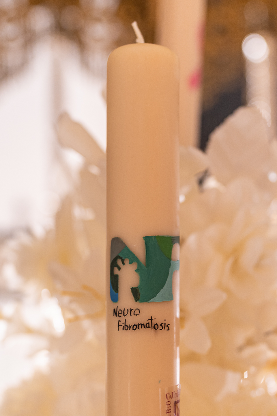 En otro de los cirios el logotipo de la neurofibromatosis y en otro “Diego Lucha contra la AME”. Nos unimos en apoyo a estas instituciones para reivindicar su lucha.