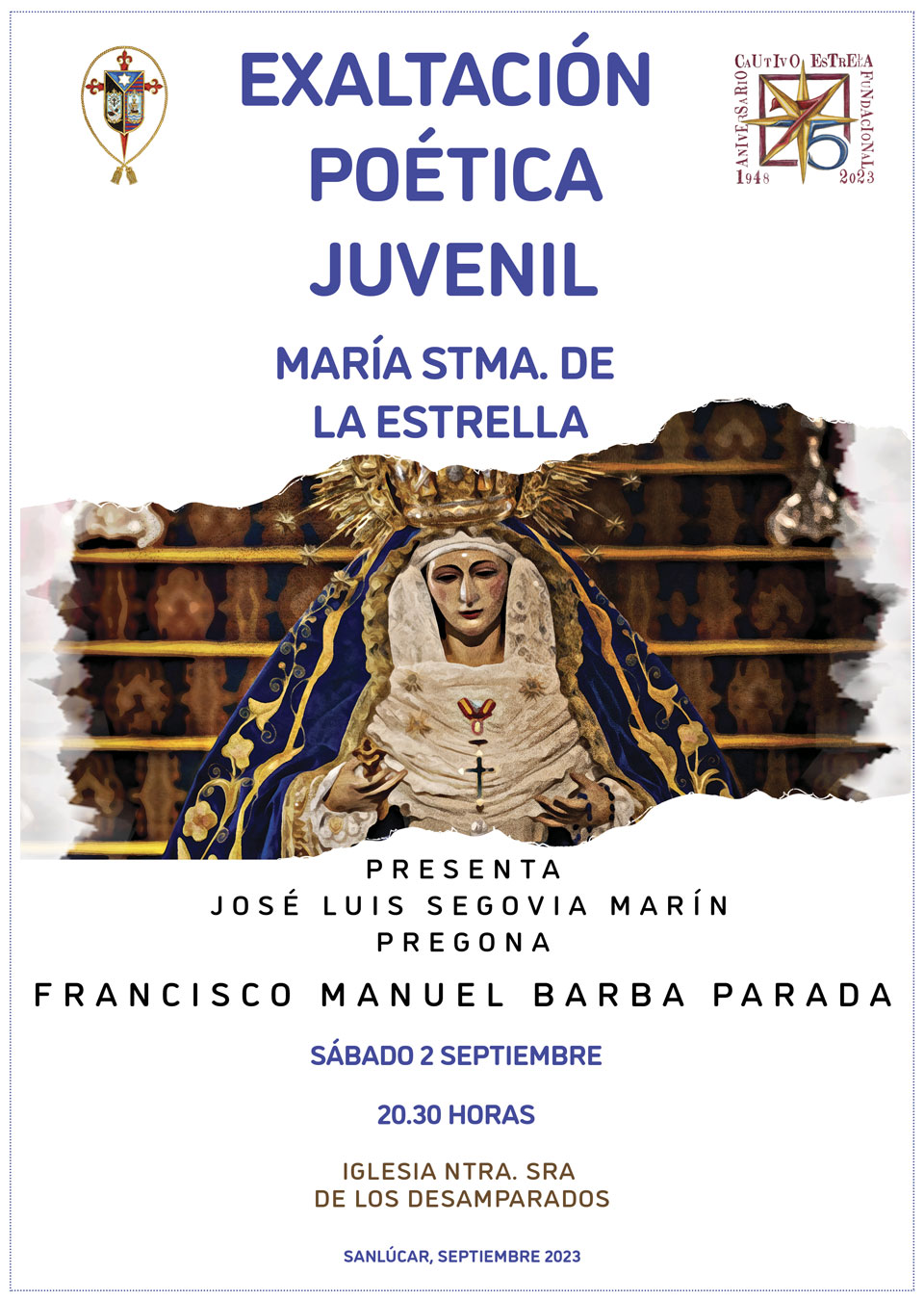 El próximo sábado 2 de septiembre , a las 20.30 horas, en la Iglesia de Ntra. Sra. de los Desamparados, tendrá lugar la Exaltación Poética