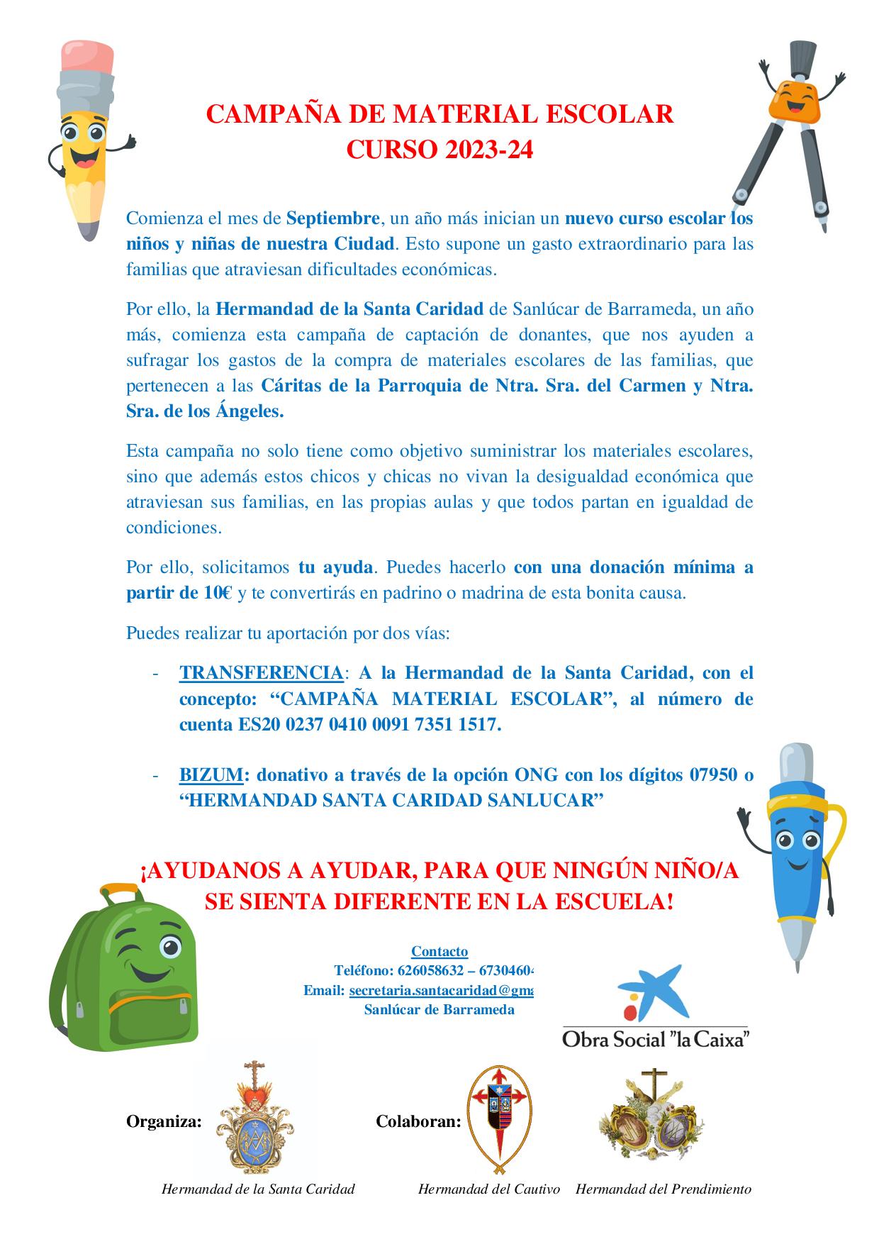 Inician un nuevo curso escolar los niños y niñas de nuestra Ciudad. Esto supone un gasto extraordinario para las familias que atraviesan dificultades económicas. La