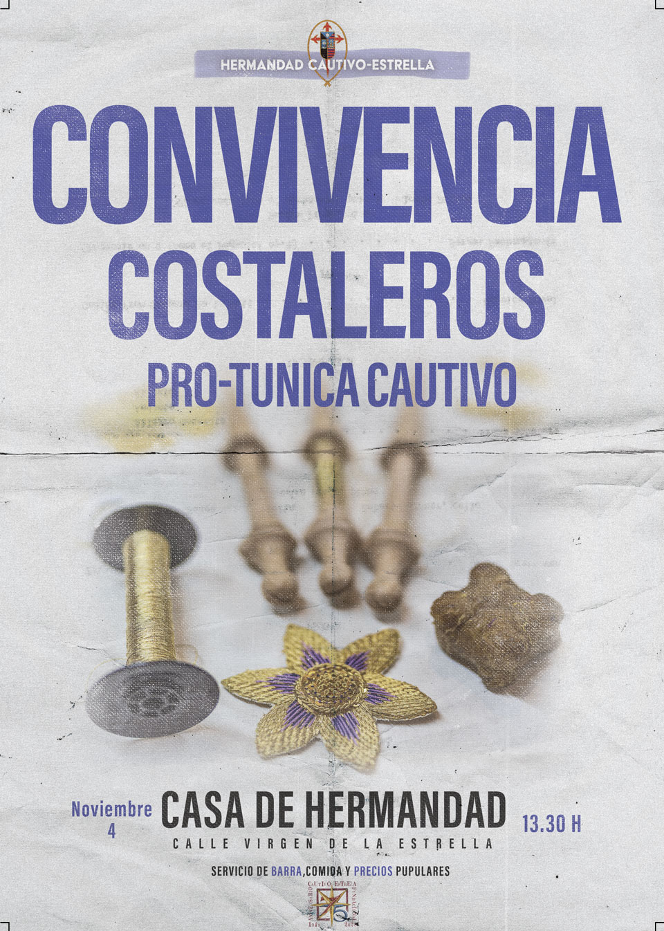 El próximo sábado 4 de noviembre a las 13:30 horas celebraremos una convivencia en nuestra casa de Hermandad Pro-Tunica de Ntro. Padre Jesús Cautivo, organizada