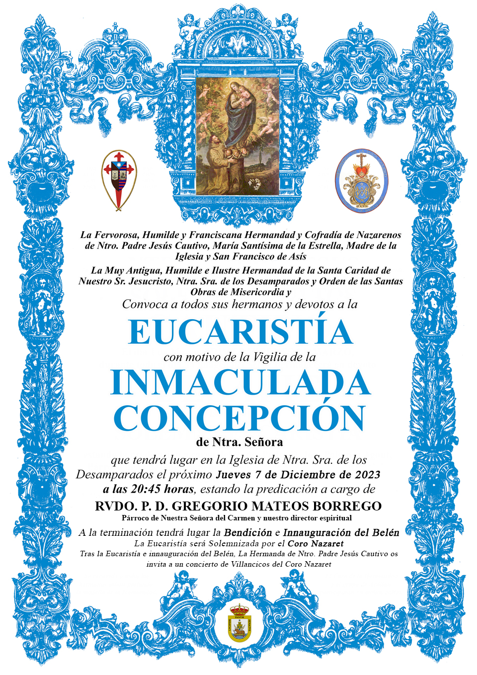 Nuestra Hermandad y la Hermandad de la Santa Caridad convoca a todos su Hermanos y devotos a la Eucaristía con motivo de la Vigilia de