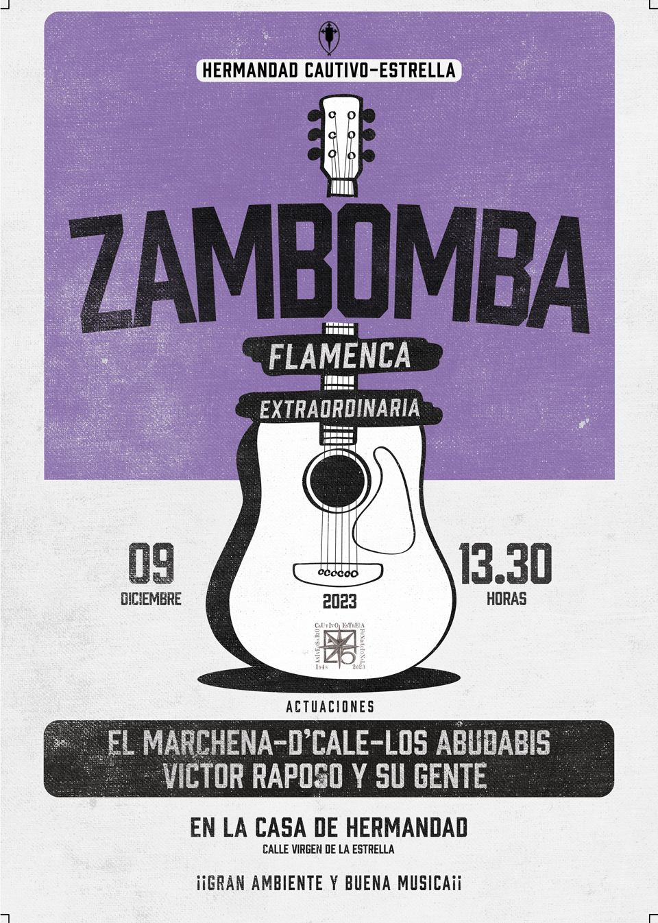 El sábado 9 de Diciembre a las 13:30 horas celebraremos la tradicional Zambomba en nuestra Casa de Hermandad. Tendremos actuaciones en directo de los grupos: